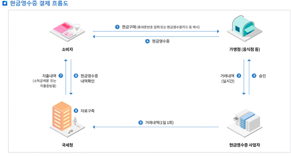 ○ 현금영수증을 수취한 사업자는 부가가치세 매입세액 공제 및 종합소득세 필요경비 인정을 위한 매입 정규증빙으로 활용할 수 있으며, 근로소득이 있는 거주자는 연말정산 시 소득공제를 적용받을 수 있습니다.